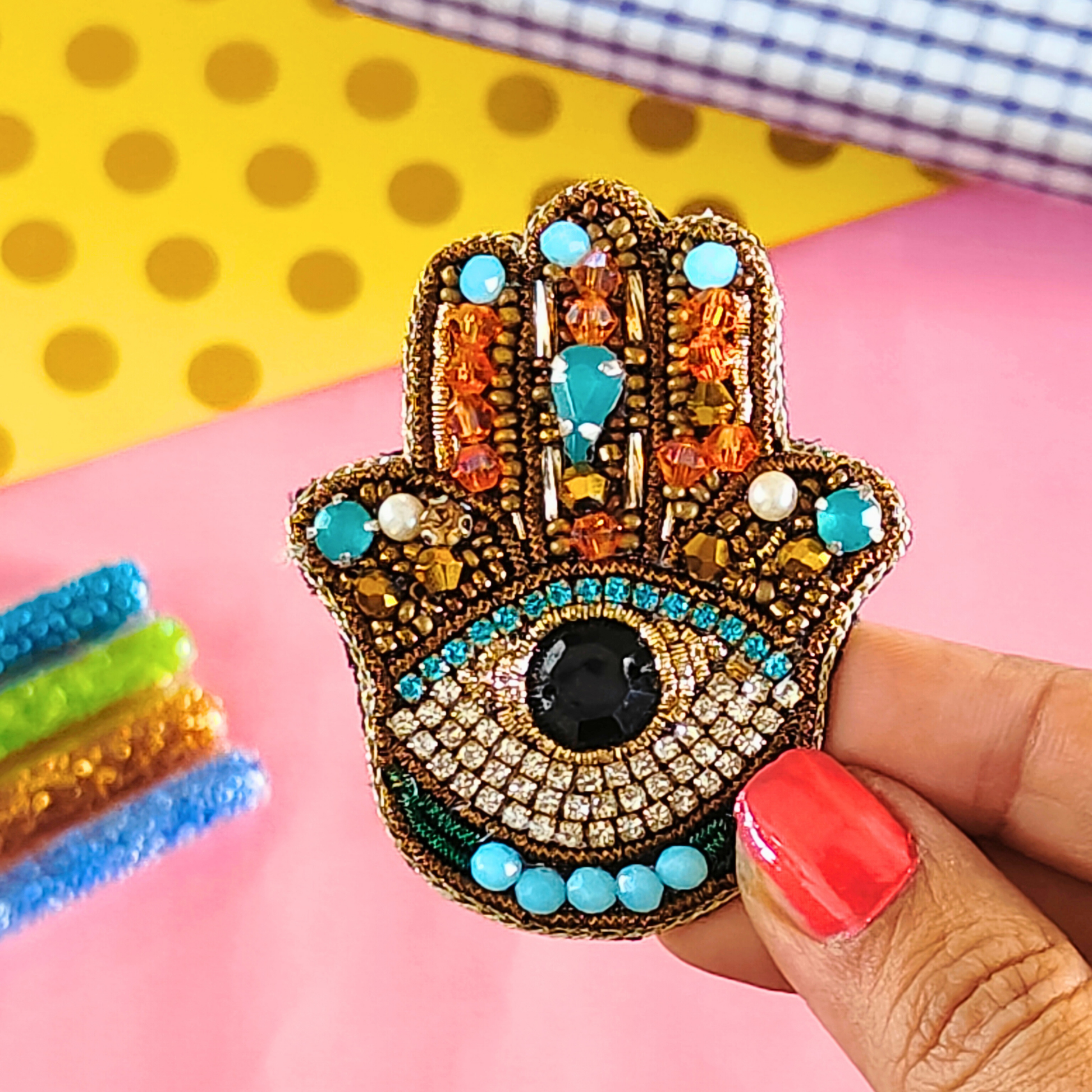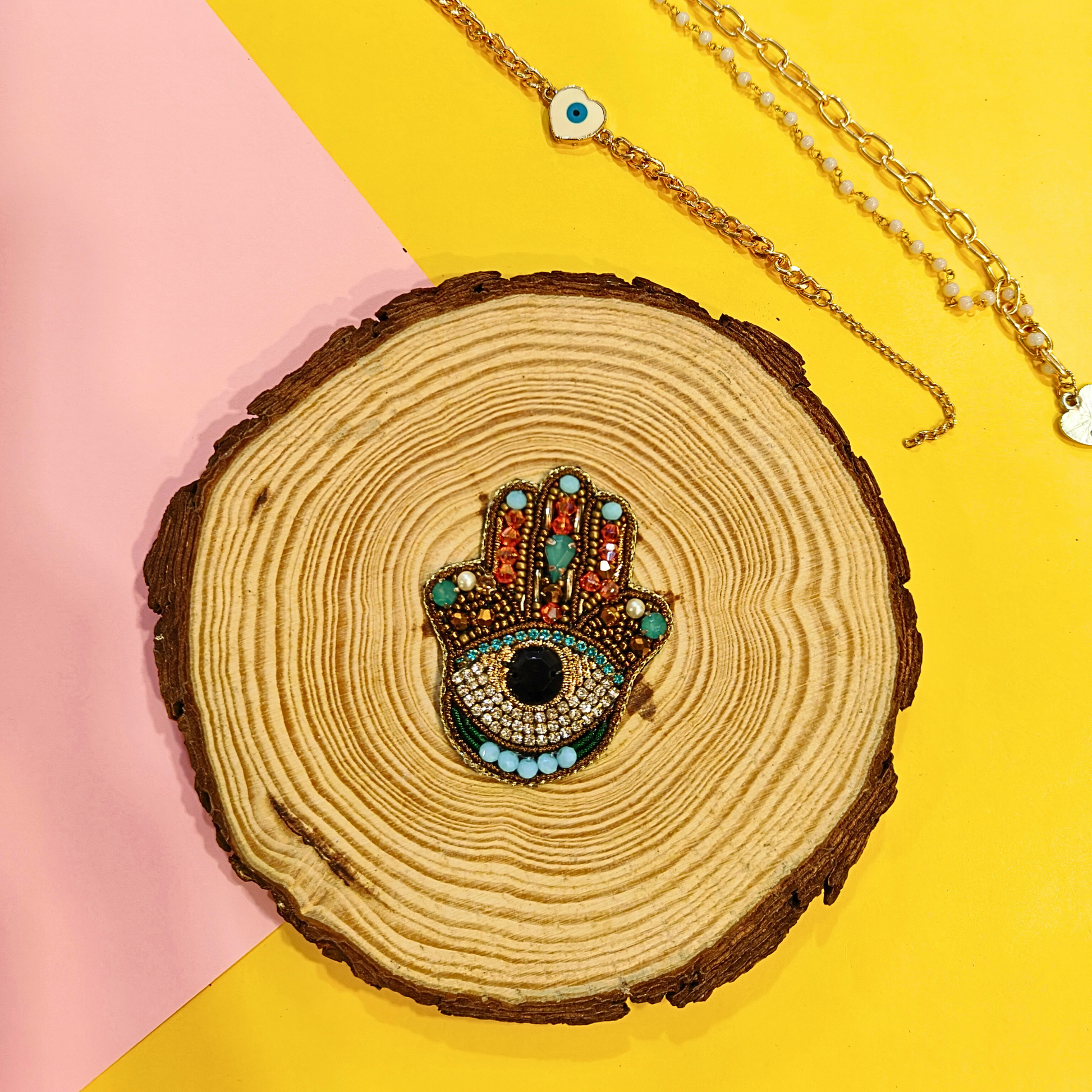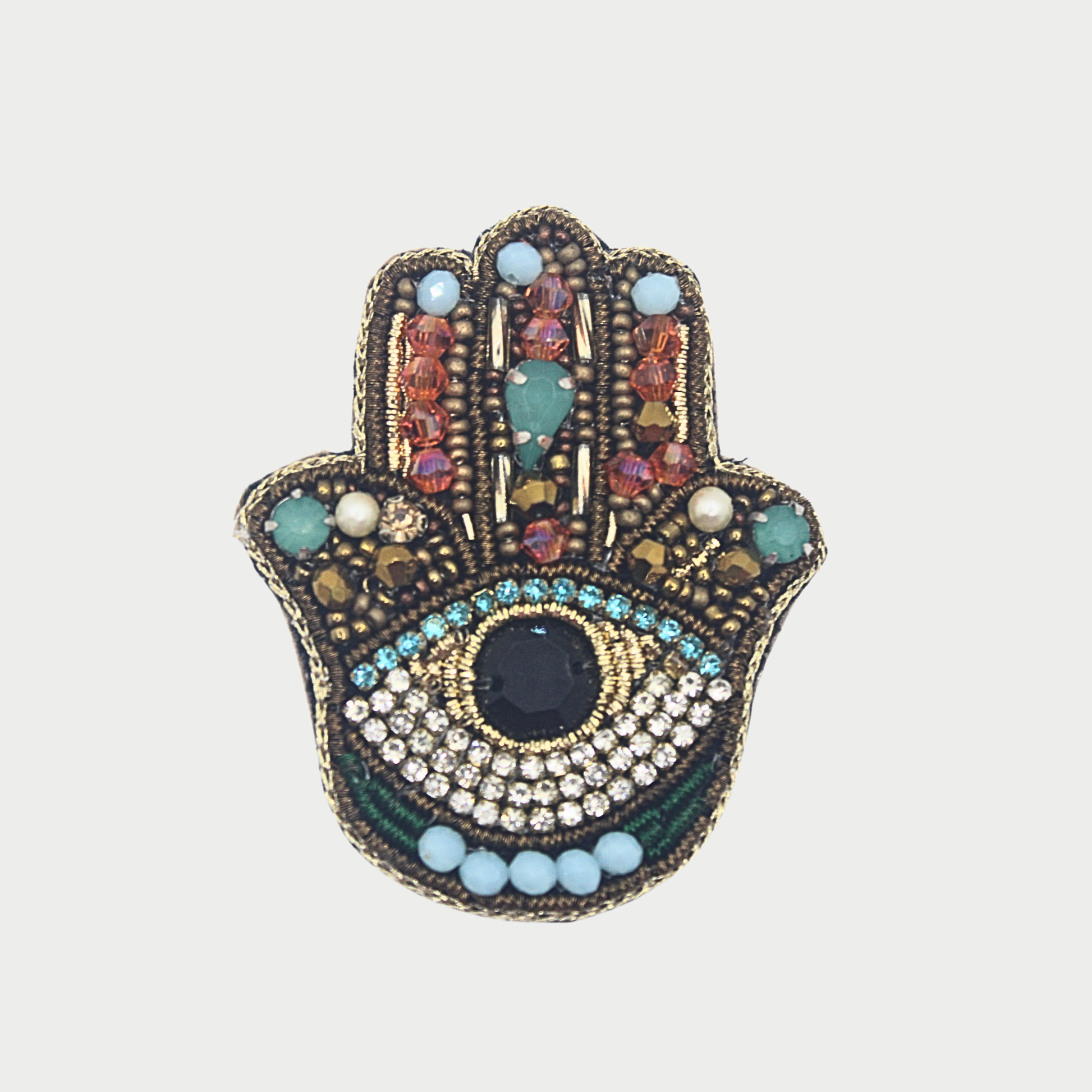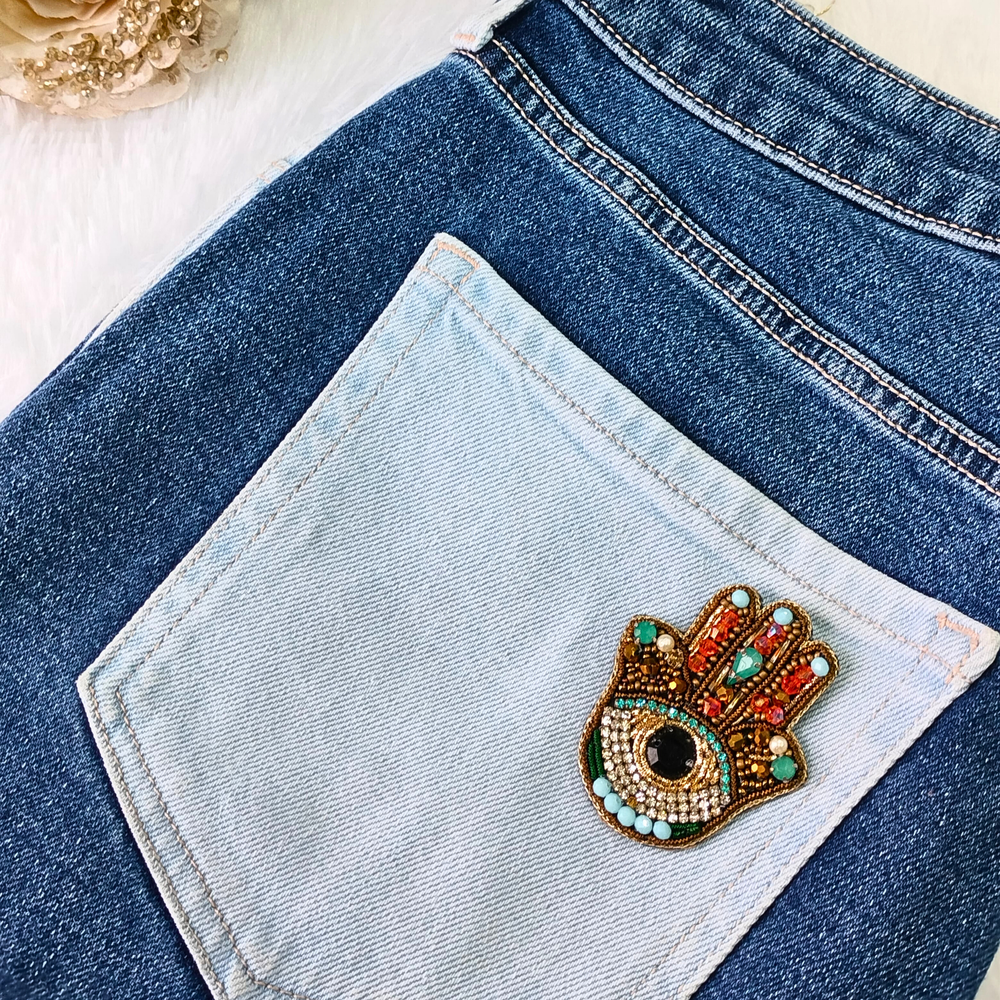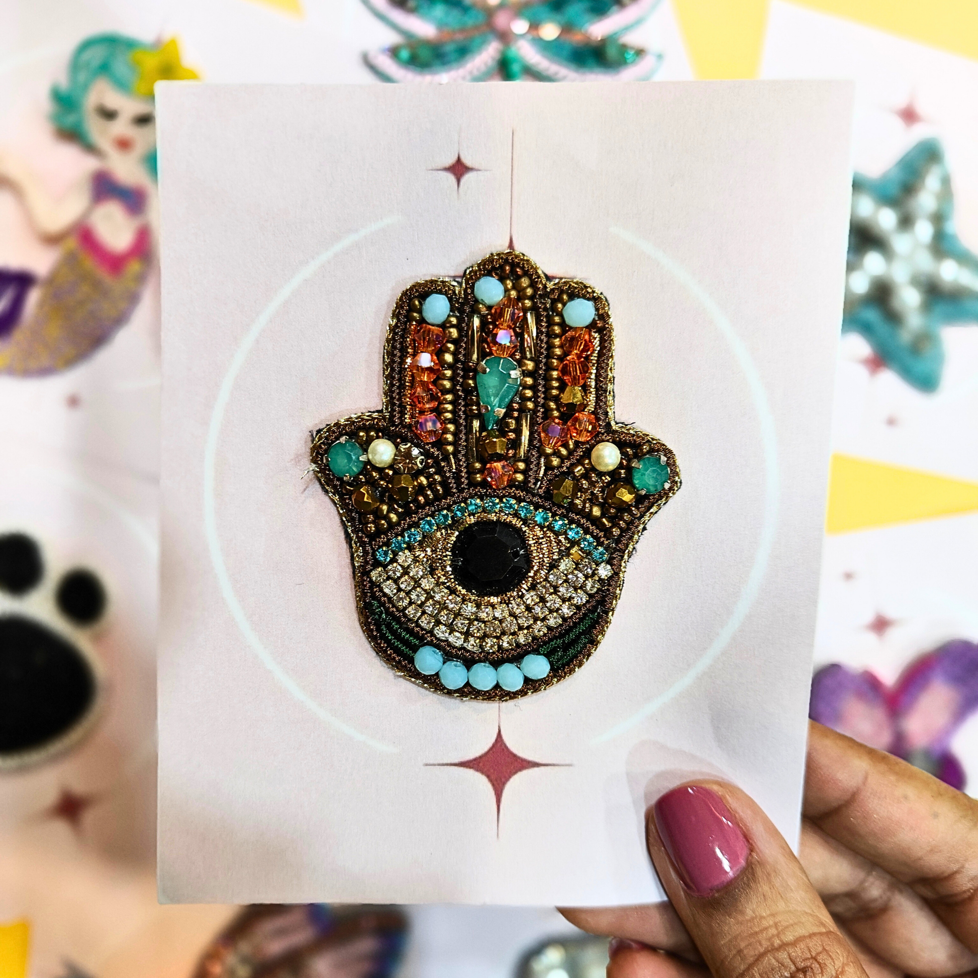 Embrace protection and positivity with the HamsaGuardian Patch. Featuring a striking design of the Hamsa symbol, known for its ability to ward off negativity, this patch adds a meaningful touch to your jackets, bags, and accessories. Crafted from durable materials, it combines style with cultural significance. Elevate your look and channel good vibes with the HamsaGuardian Patch today!