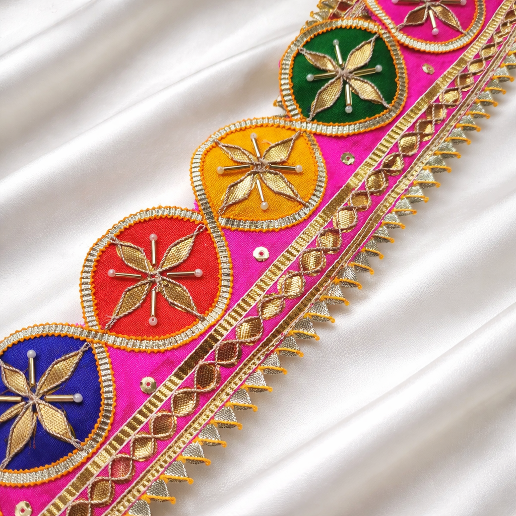 A beautifully designed gota trim that adds a traditional sparkle to any creation. Handcrafted with precision, it features fine gota work detailing that reflects timeless Indian artistry. Perfect for festive wear, wedding outfits, and ethnic décor. Ideal for sarees, dupattas, lehengas, blouses, and craft embellishments.