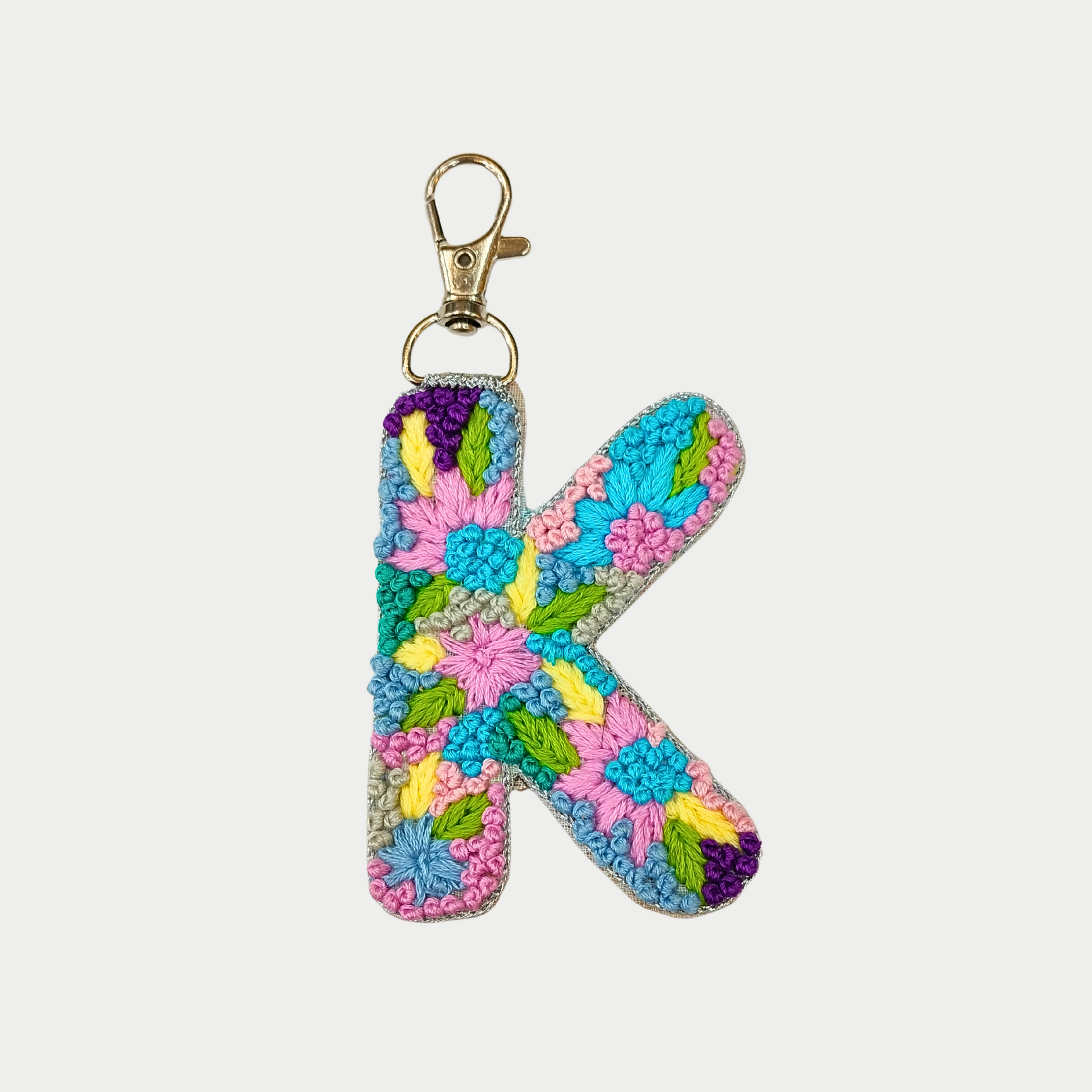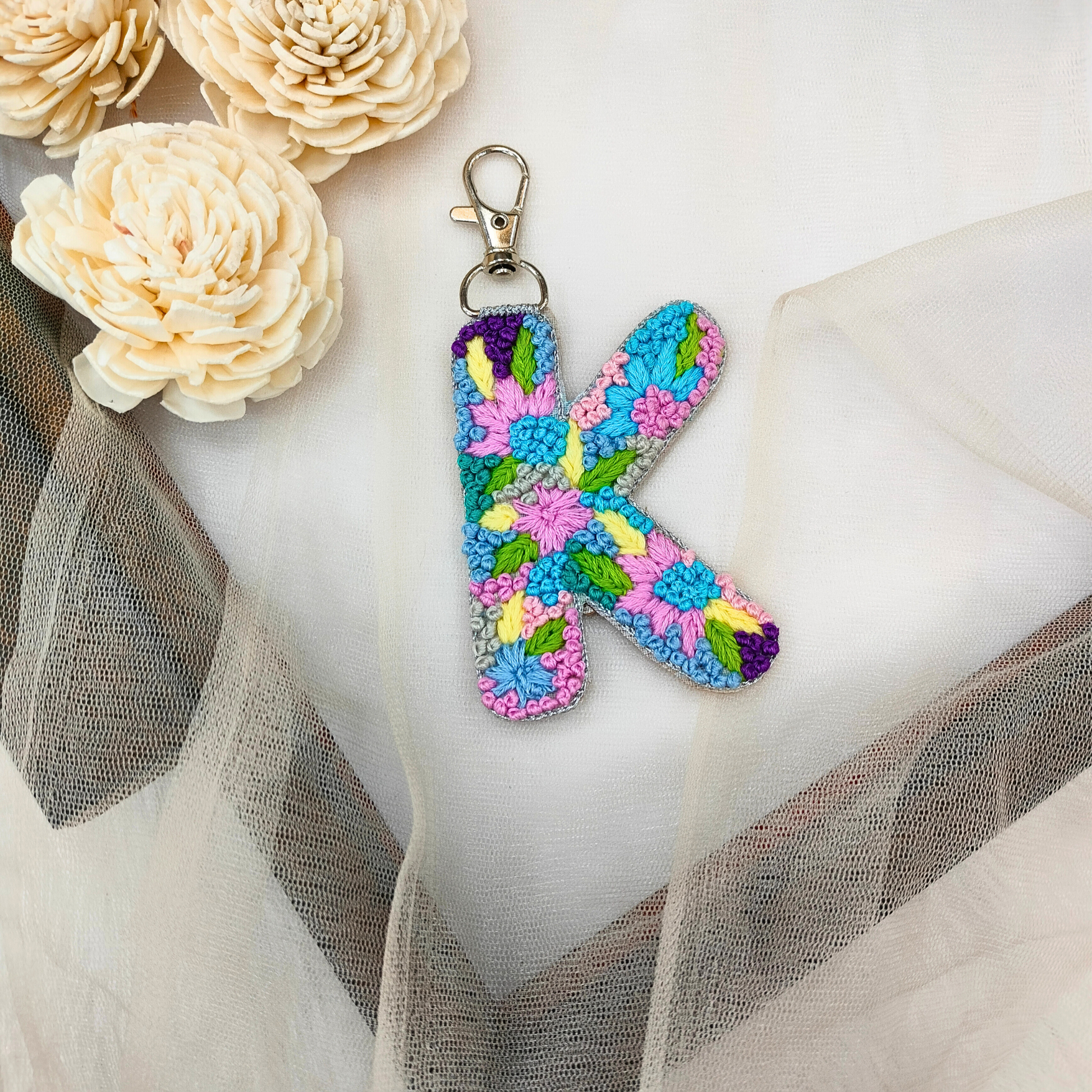 Make a statement with this beautifully handcrafted initial keychain, adorned with intricate thread embroidery and floral detailing. Designed to bring a personal touch to your bags, keys, or gifts, it features a sturdy metal clasp for easy attachment. Lightweight yet striking, this piece combines artistry and functionality—perfect as a thoughtful gift or a stylish everyday accessory. Add a bit of handcrafted charm to your essentials with this unique piece.