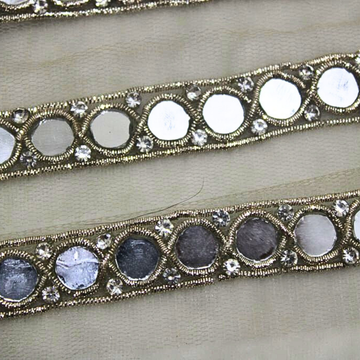 Light Gold Mirror And Stone Embellished Handwork Trim