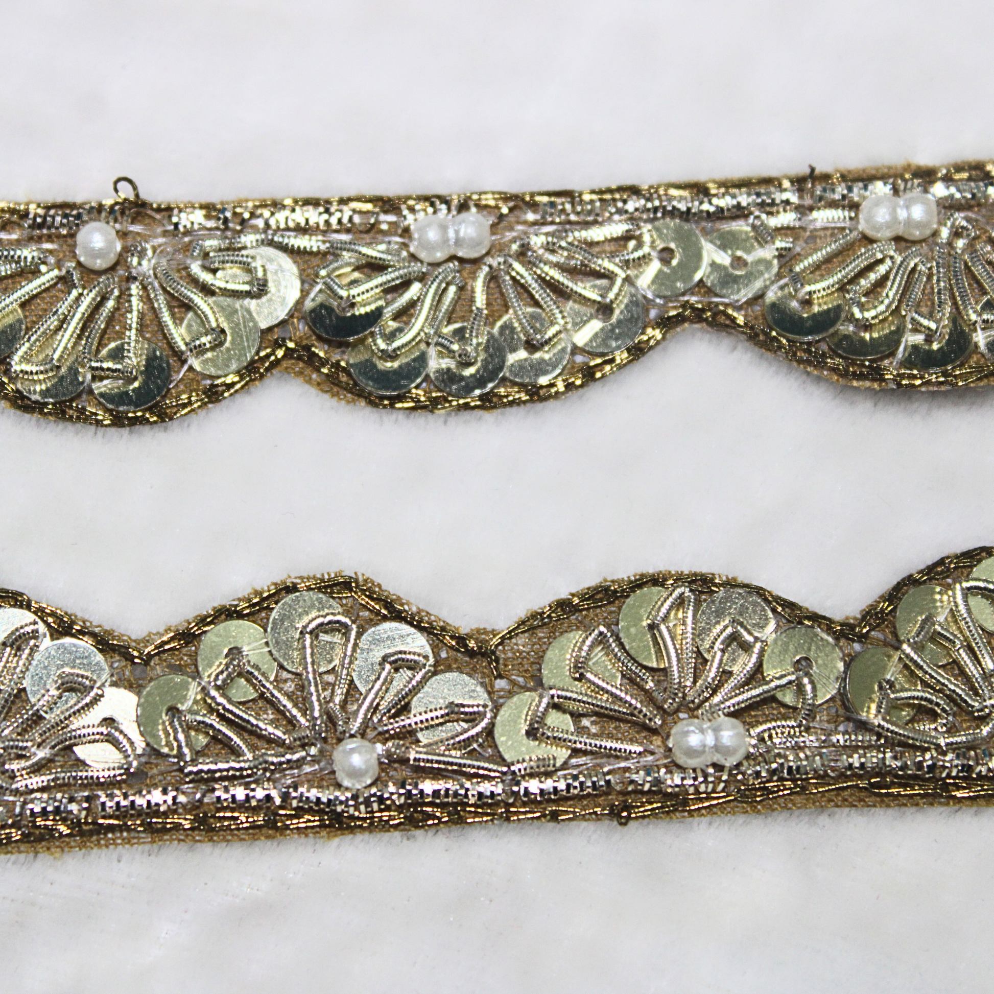Enhance your creations with the subtle elegance of our Light Gold Scalloped Trim. Crafted with delicate light gold thread, this trim features a beautiful scalloped design that adds a touch of refinement and luxury to any piece. Perfect for sarees, lehengas, dupattas, or home décor, the soft gold hue gives a timeless and graceful finish. Ideal for weddings, festive occasions, or couture designs, this Light Gold Scalloped Trim adds a sophisticated, understated beauty to your creations.