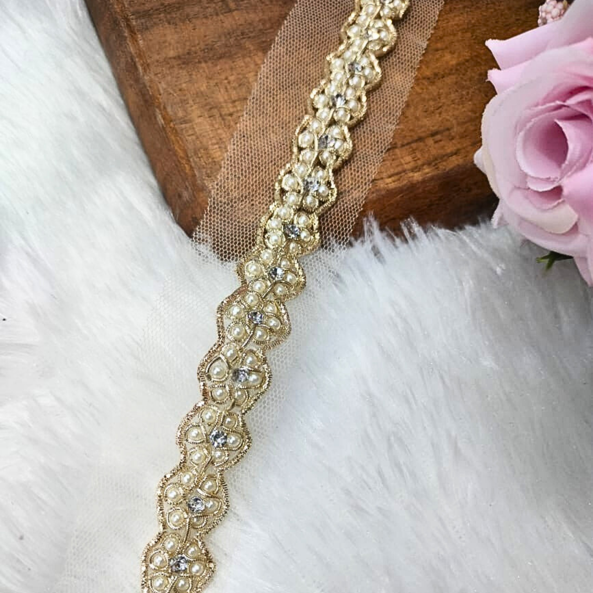 Light Gold Shimmer Embroidered Handcrafted Trim
