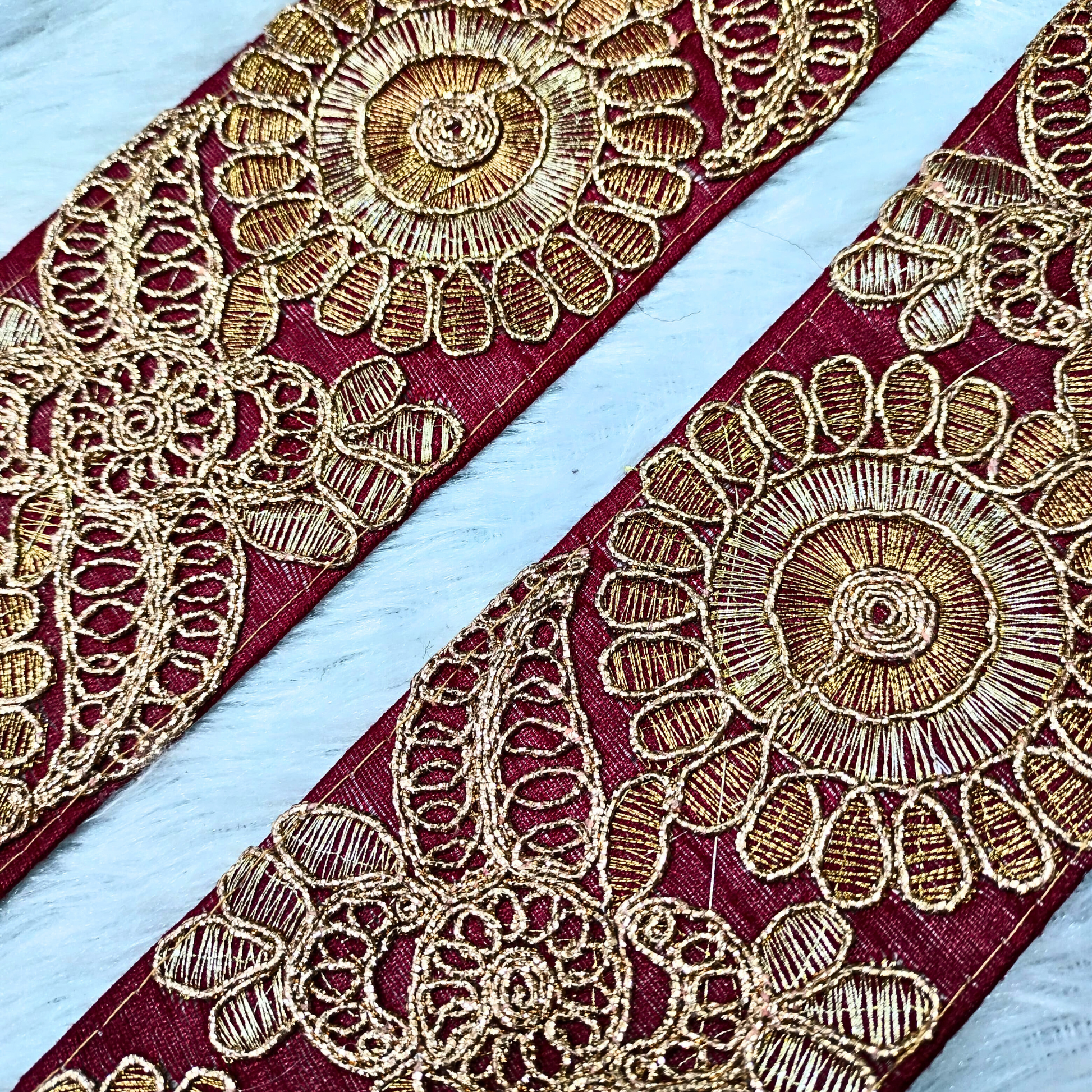 Maroon Fancy Zari and Thread Work Embroidered Border
