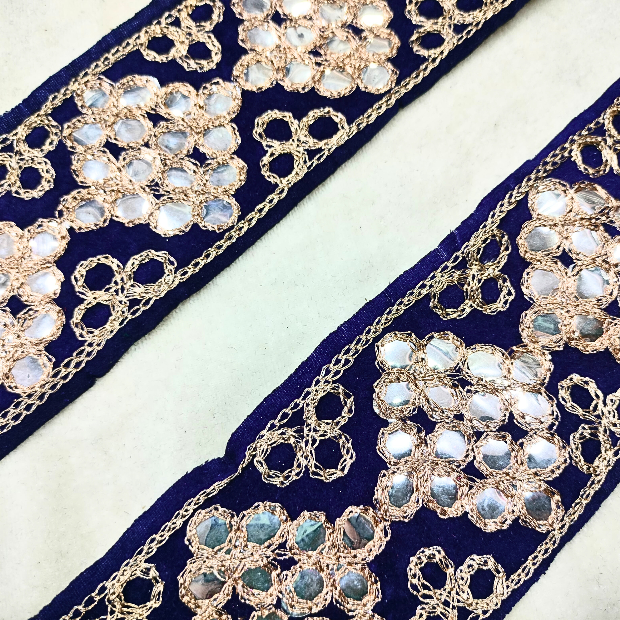 Navy Blue Fancy Zari and Thread Work Embroidered Border