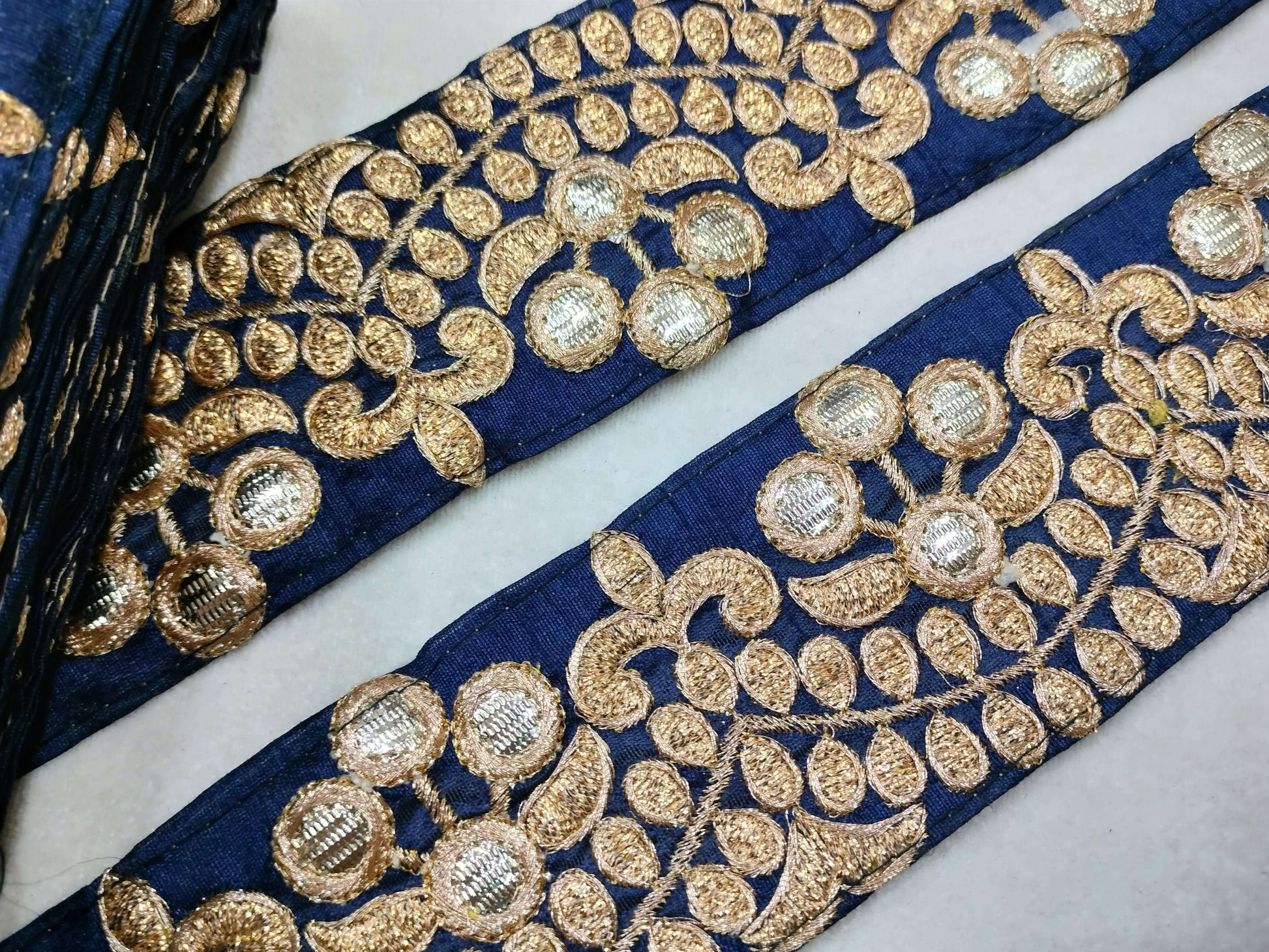Navy Blue Fancy Zari and Thread Work Embroidered Border