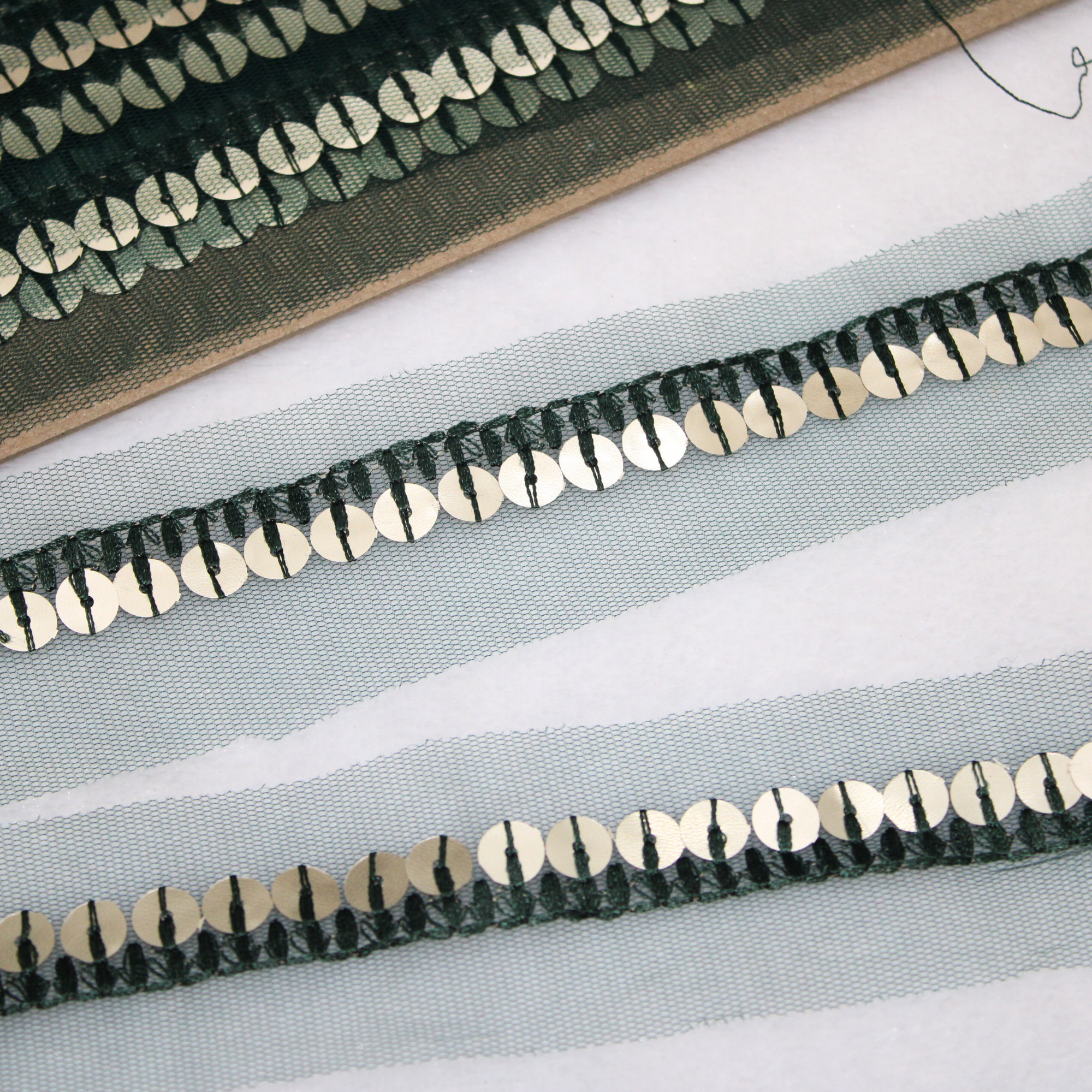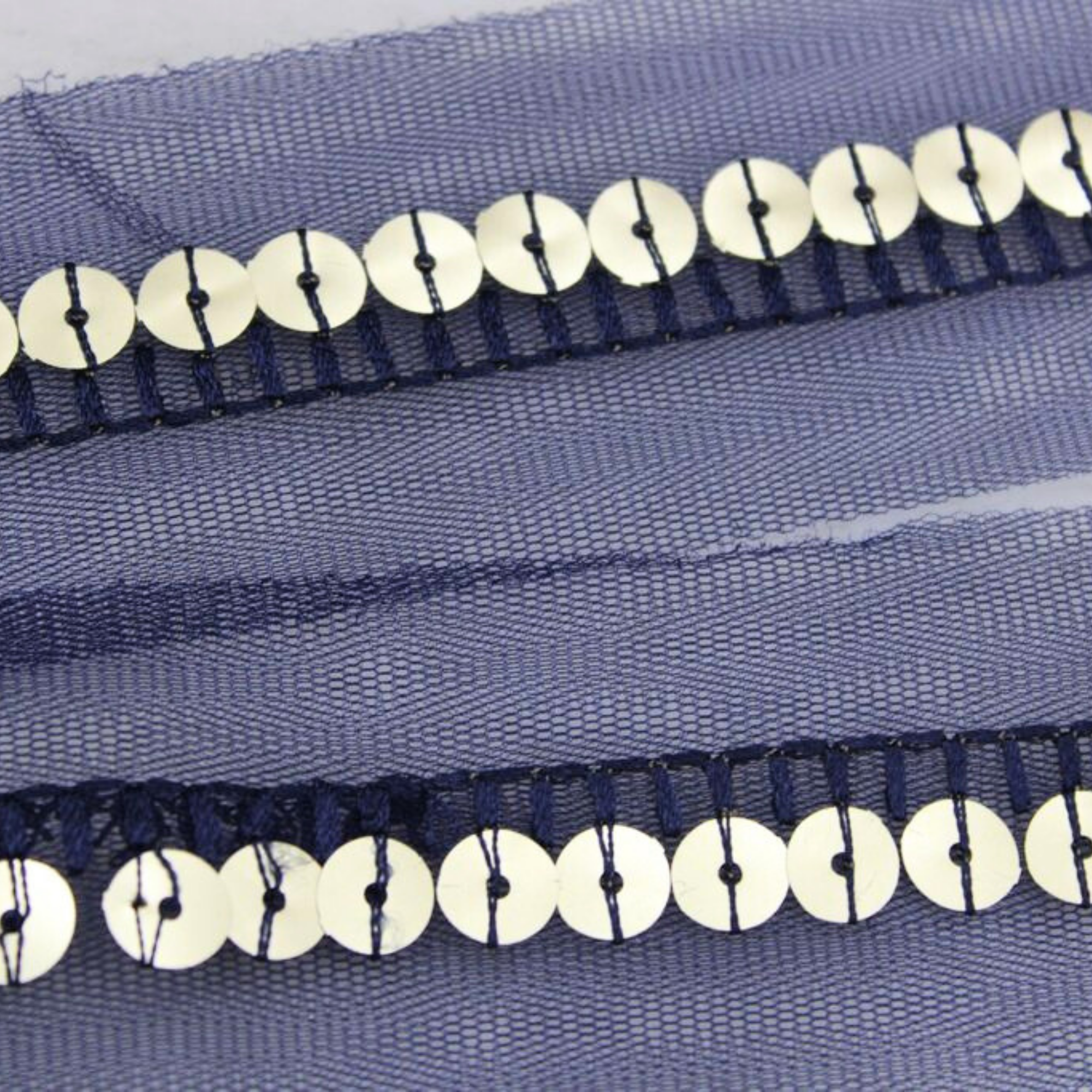 Add a touch of elegance and sparkle with this Thread and Sequin Trim. Featuring intricate threadwork and shimmering sequins, it creates a rich, textured effect. The deep navy blue hue offers a sophisticated and timeless appeal. Perfect for sarees, lehengas, and accessories. A luxurious trim that combines glamour and refinement in every stitch.