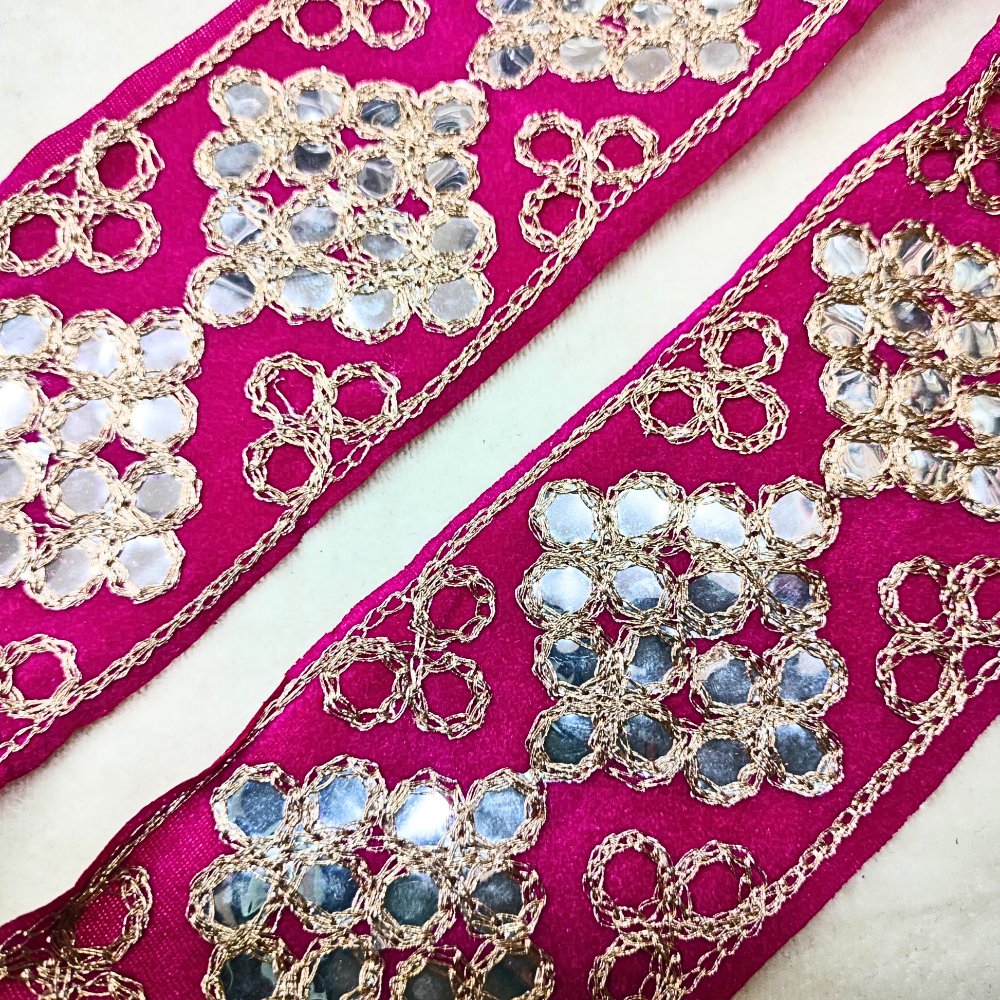 Add a soft, yet vibrant touch to your creations with our Pink Fancy Zari and Thread Work Embroidered Border. This beautiful border features a delicate pink hue, adorned with intricate zari and thread embroidery that brings a luxurious, textured finish. The shimmering metallic zari threads offer a graceful glow, while the detailed threadwork adds depth and dimension to the design. Ideal for enhancing sarees, lehengas, dupattas, and home decor, this embroidered border is perfect for weddings, festivals, and special occasions. Elevate your creations with the feminine elegance and timeless beauty of pink and metallic embroidery!