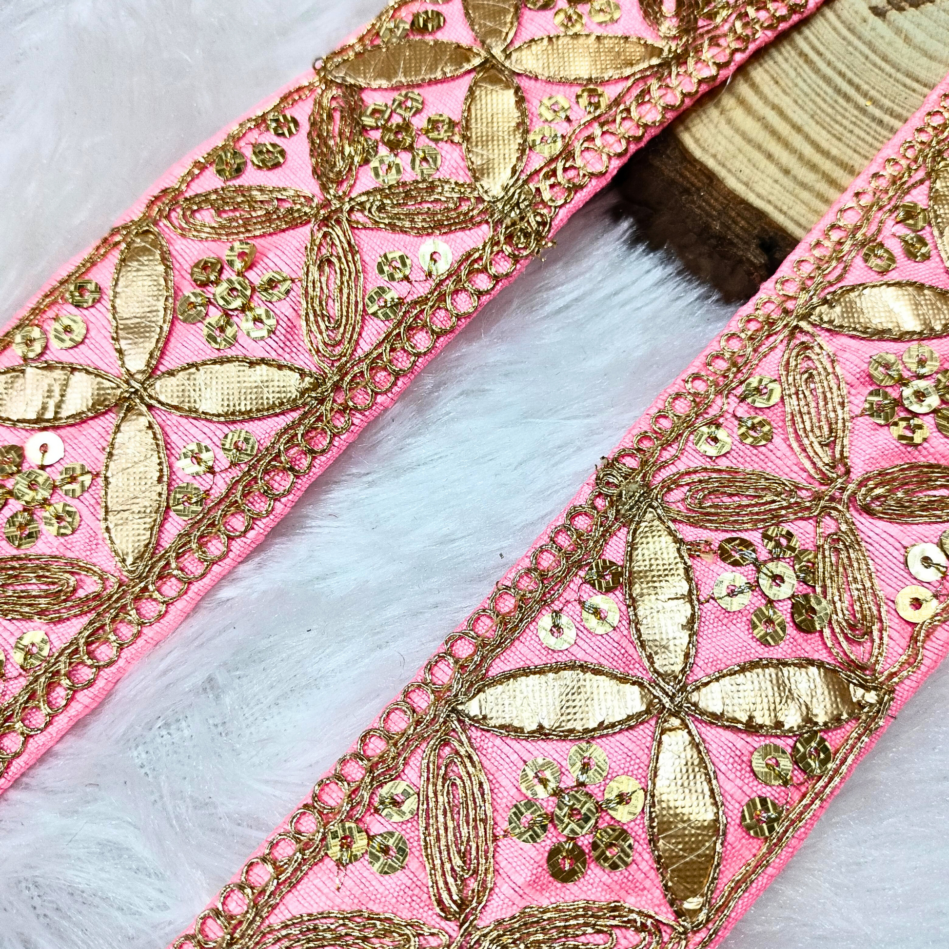 Add a soft yet vibrant touch to your creations with our Pink Fancy Zari and Thread Work Embroidered Border. This beautiful border features a delicate pink hue, intricately enhanced with luxurious zari and thread embroidery. The shimmering metallic zari threads provide a graceful shine, while the detailed threadwork adds depth and texture, making it perfect for enhancing sarees, lehengas, dupattas, and home decor. Ideal for weddings, festivals, and special occasions, this embroidered border exudes femininity and elegance. Elevate your creations with the timeless beauty of pink and metallic embroidery!