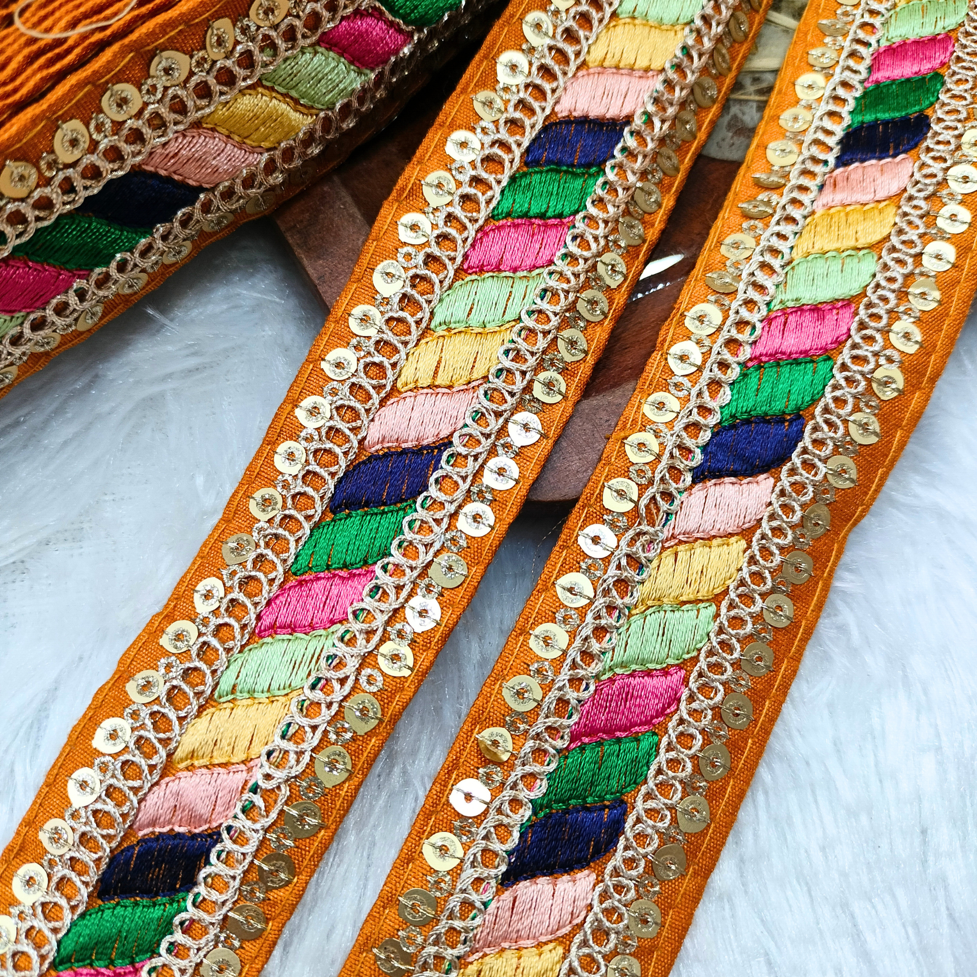Elevate your designs with our vibrant Multicolor Embroidery Work Lace, crafted to add a stunning burst of color and intricate detail to any project. This lace features an array of vibrant threads meticulously woven into beautiful, eye-catching patterns, making it the perfect addition to garments, accessories, and home decor.