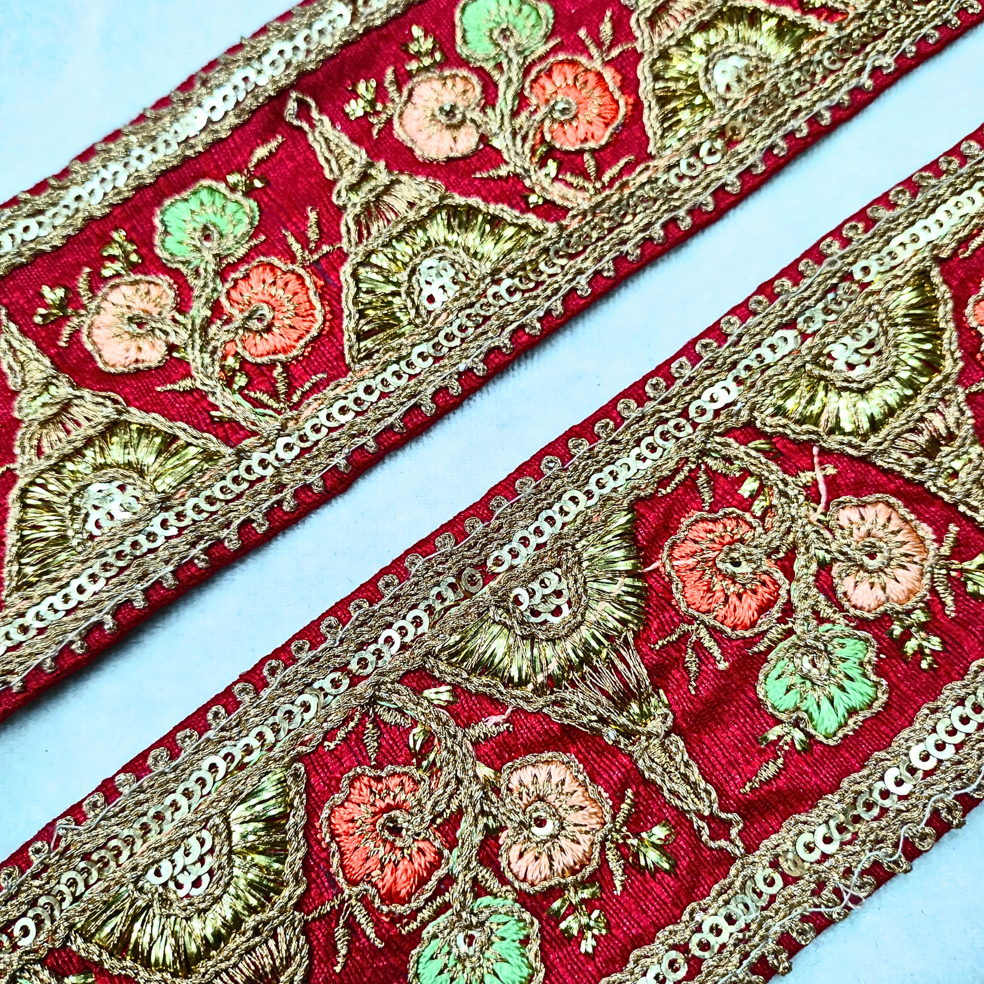 The Fancy Zari and Thread Work Embroidered Border is a beautifully crafted decorative trim, featuring intricate zari (metallic thread) and detailed threadwork embroidery. This combination adds a luxurious and textured finish to any fabric, often used to enhance sarees, lehengas, dupattas, or home decor pieces like cushions and table runners. The zari threads, typically gold or silver, shimmer against the rich color of the base fabric, while the threadwork adds depth and dimension with floral, paisley, or geometric motifs. Perfect for weddings, festive occasions, or special events, this border creates a timeless, elegant look that blends tradition with contemporary style.
