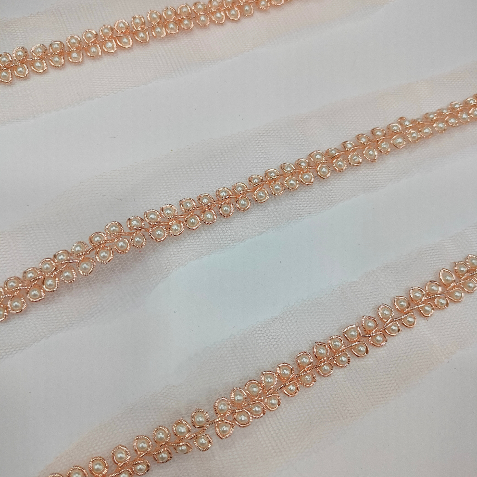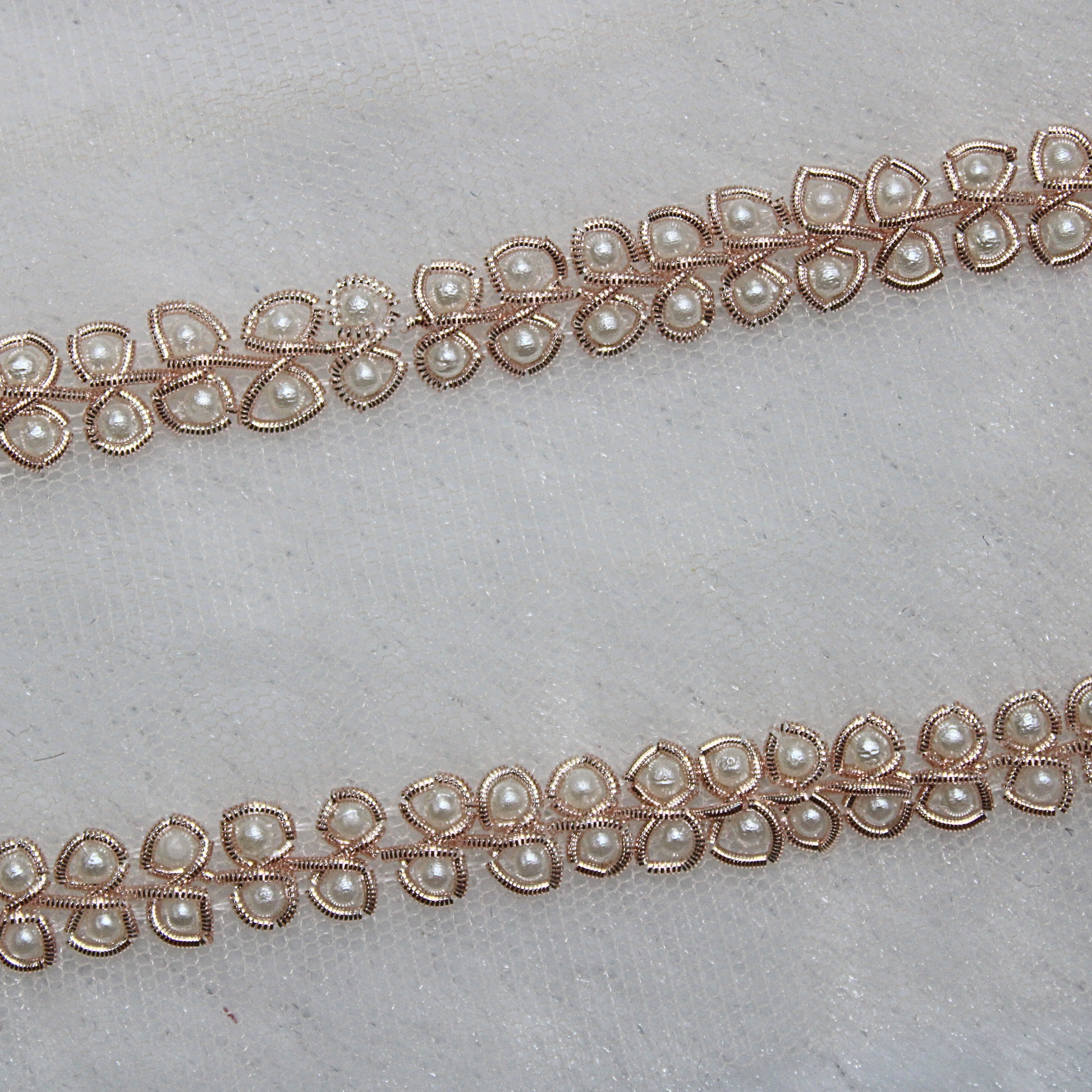Elevate your designs with our Rose Gold Pearl Embellished Handwork Trim. This exquisite trim features intricate embellishments that reflect light beautifully, adding a touch of glamour to any project. Ideal for enhancing garments, accessories, and home decor, it brings a chic and sophisticated flair. Easy to apply, making it perfect for crafters of all skill levels. Infuse your creations with the radiant charm of rose gold!