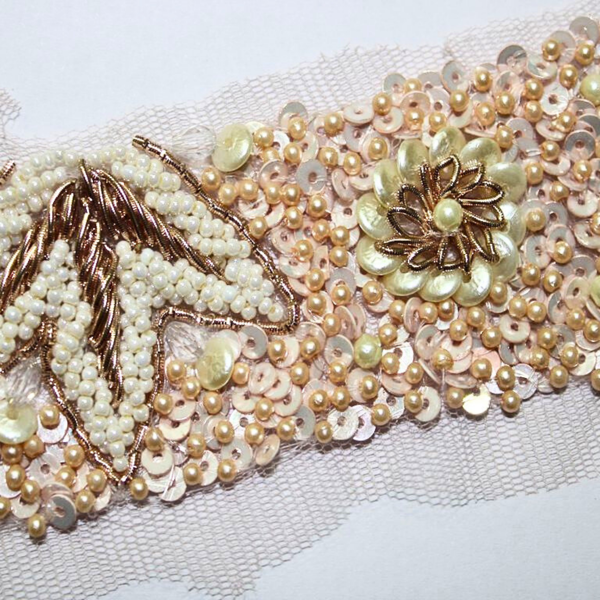 Rose Gold & Peach Embellished Handwork Trim