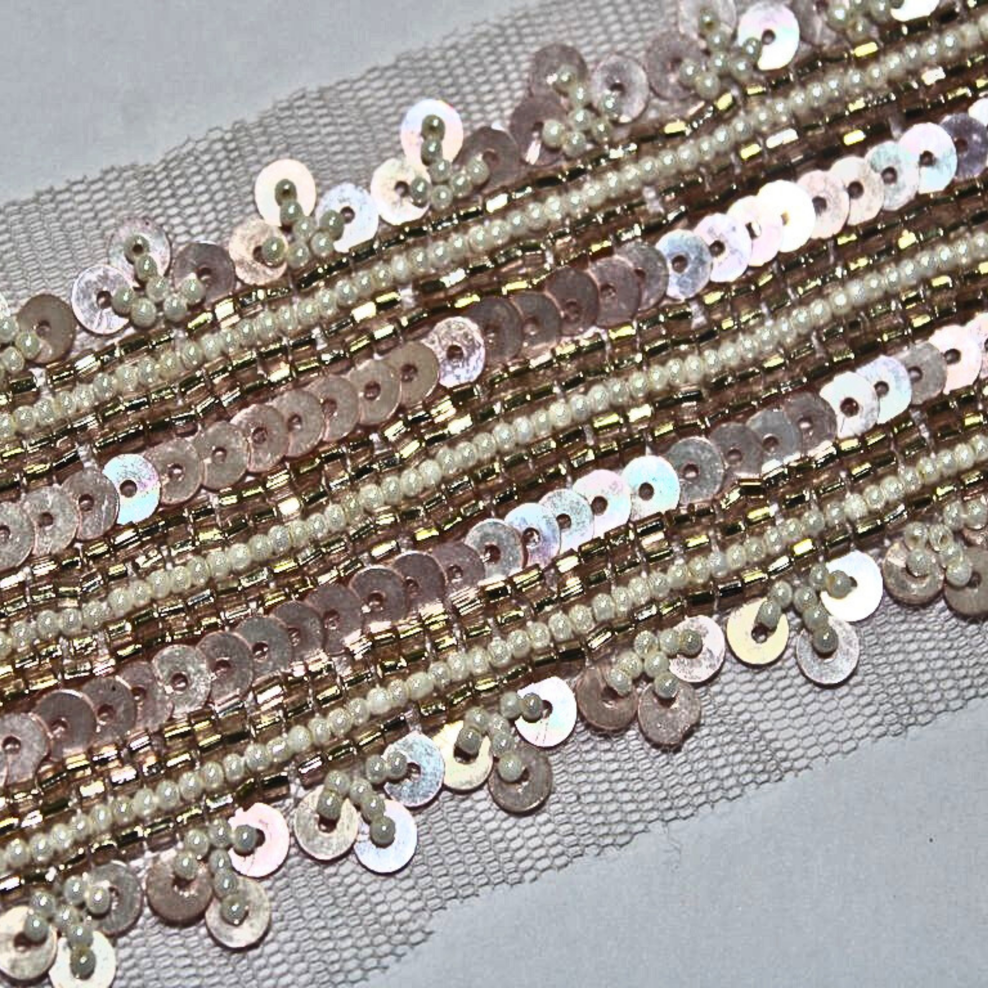 Add a touch of luxury and sophistication to your designs with our Rose Gold Embellished Trim. Featuring intricate embellishments of rose gold threads, beads, and sequins, this trim offers a refined, shimmering effect that elevates any creation. The warm rose gold tone complements a variety of fabrics and design styles, adding a modern yet timeless charm.