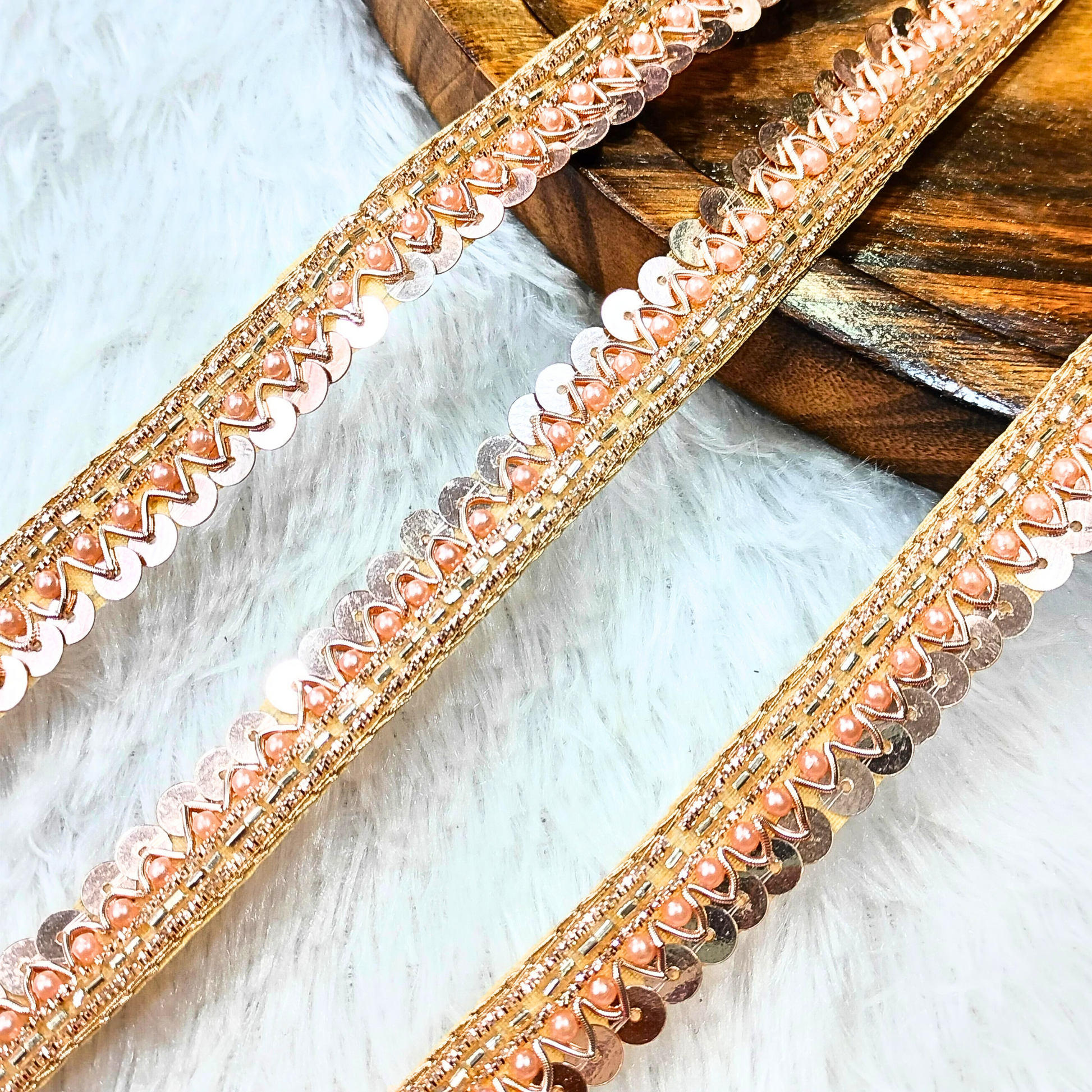 Introduce a touch of elegance and craftsmanship to your creations with our Rose Gold Handwork Trim. Featuring meticulously crafted hand-embellished details in a stunning rose gold hue, this trim exudes sophistication and charm. The intricate handwork adds a unique, artisanal quality, making it perfect for those looking to create one-of-a-kind, luxurious designs.