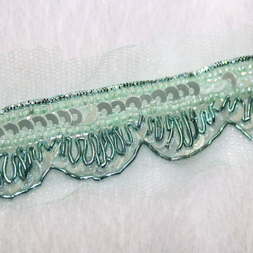 Add a touch of elegance and charm with our Sea Blue Sequin Embellished Handcrafted Trim. Featuring intricate beadwork, sequins, and delicate embroidery in a serene sea blue hue, this trim enhances any design with its vibrant and soothing color. Perfect for bridal wear, evening gowns, ethnic attire, accessories, or home decor, it complements a variety of fabrics with its luxurious finish. Whether you're crafting custom garments or adding a personal touch to DIY projects, this handwork trim will bring a sophisticated, artistic flair to your creations. Elevate your designs with the beauty of our Sea Blue Embellished Handwork Trim.