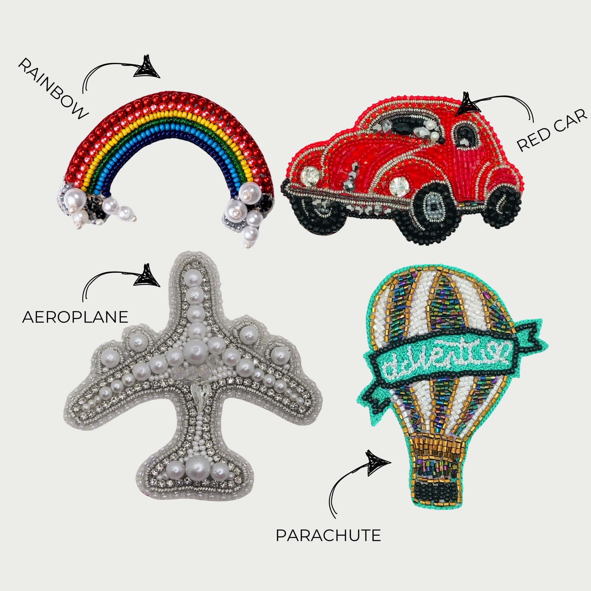 For the Free-Spirited Travelers! Our Wanderlust Collection is a dreamy set featuring a parachute, airplane, rainbow, and red car—perfect for adventure lovers! Add these patches to your bags, jackets, or accessories and carry your travel vibes wherever you go!