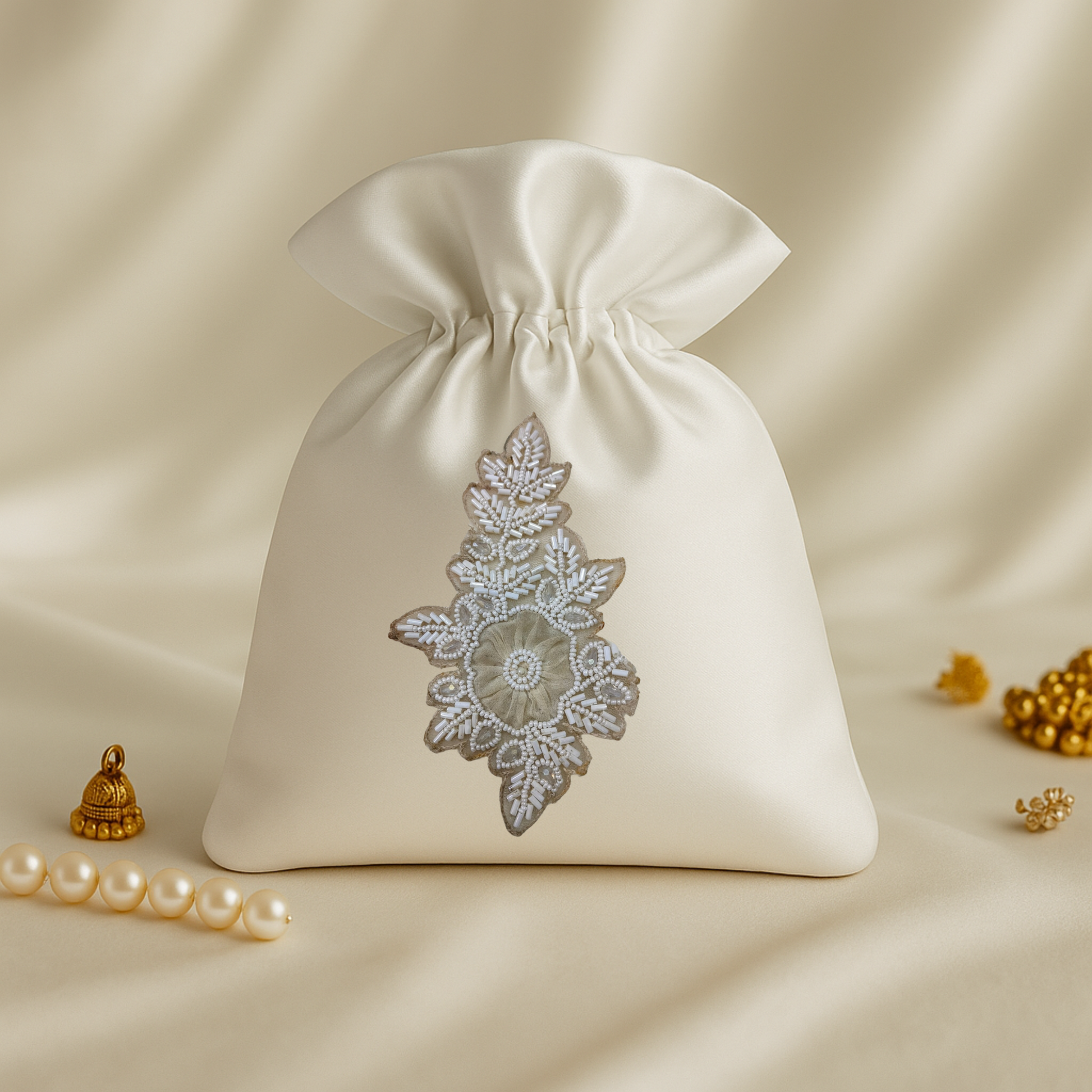 This elegant floral patch features soft white pearls, beads, and fine embroidery arranged in a layered floral pattern. The subtle colour palette gives it a timeless and graceful look, making it ideal for bridal and pastel outfits. Handcrafted with precision, this patch is perfect for lehengas, blouses, sarees, dupattas, and couture designs. A beautiful embellishment for those who love minimal yet luxurious detailing.